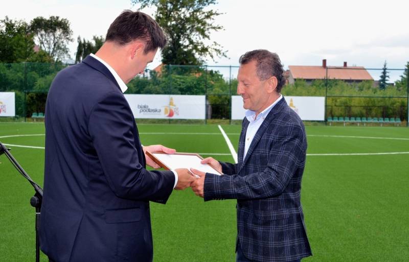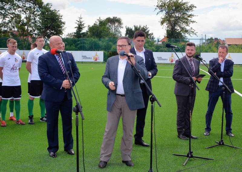 Oprócz ministra w uroczystym otwartciu wzieli udział przedstawiciele bialskiego środowiska piłkarskiego oraz senator Grzegorz Bierecki i poseł Janusz Szewczak, którzy wspierali budowę boiska.