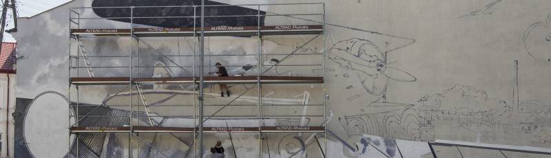 Na budynku przy ulicy Narutowicza widać już wyraźny zarys całości i ukończone fragmenty muralu, który ozdobi pustą ścianę kamienicy. To pierwsze tak duże dzieło w Białej Podlaskiej. Autorką projektu i jego wykonawczynią jest Karolina Zielińska, która kilka miesięcy temu wygrała w konkursie organizowanym przez prezydenta miasta.
