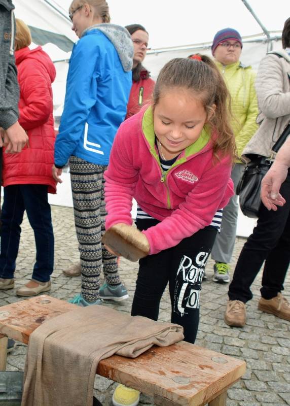 Grupa osób zajmująca się ginącymi zawodami na co dzień pracuje przy Europejskim Centrum Kształcenia i Wychowania w Roskoszy. Tym razem wyjątkowo pojawili się na placu Wolności z okazji miejskiego święta, w towarzystwie dyrektora Karola Sudewicza.