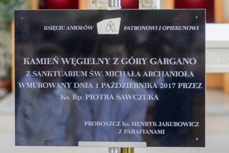 Wyjątkowy kamień węgielny pochodzi z Góry Gargano, gdzie znajduje się Sanktuarium św. Michała Archanioła. Miejsce uchodzi za jedyną świątynię na ziemi, uświęconą ręką nie człowieka, a anioła. To tutaj znajduje się grota, w której wielokrotnie objawiał się patron Białej Podlaskiej.