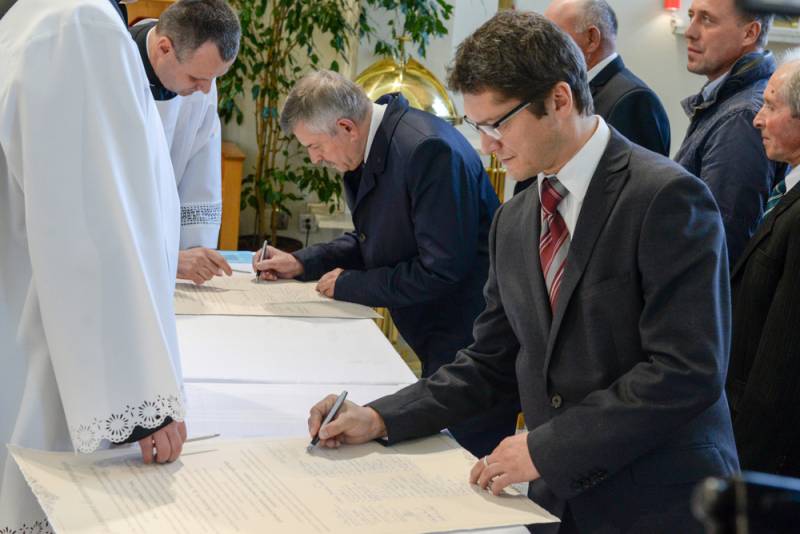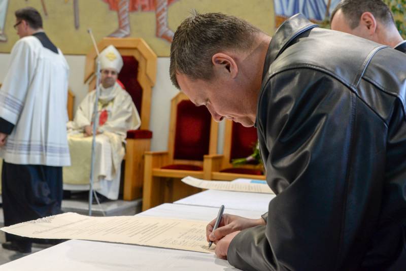 Na zakończenie uroczystości zgromadzeni goście, księża oraz inżynierowie podpisali akt upamiętniający budowę kościoła, który został wmurowany w jedną ze ścian. Dokument podpisali m.in. prezydent Dariusz Stefaniuk, starosta bialski, wicewojewoda lubelski, biskup Piotr Sawczuk i proboszcz Henryk Jakubowicz, a także prałat Mieczysław Lipniacki.