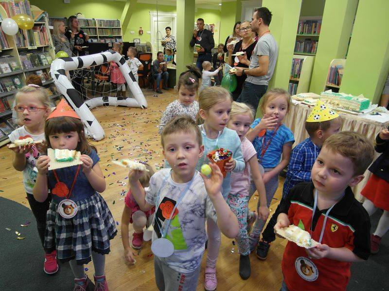 Miś Uszatek przygotował zarówno dzieciom, jak i ich rodzicom, dużo sportowych wyzwań, które poprzedziła rozgrzewka. Okazało się, że wśród bialskich wielbicieli książek i misiów jest wielu przyszłych Robertów Lewandowskich. Na szczęście jeszcze nie są na sportowej diecie i mogli skosztować pysznego tortu, ufundowanego przez PSS „Społem” w Białej Podlaskiej.