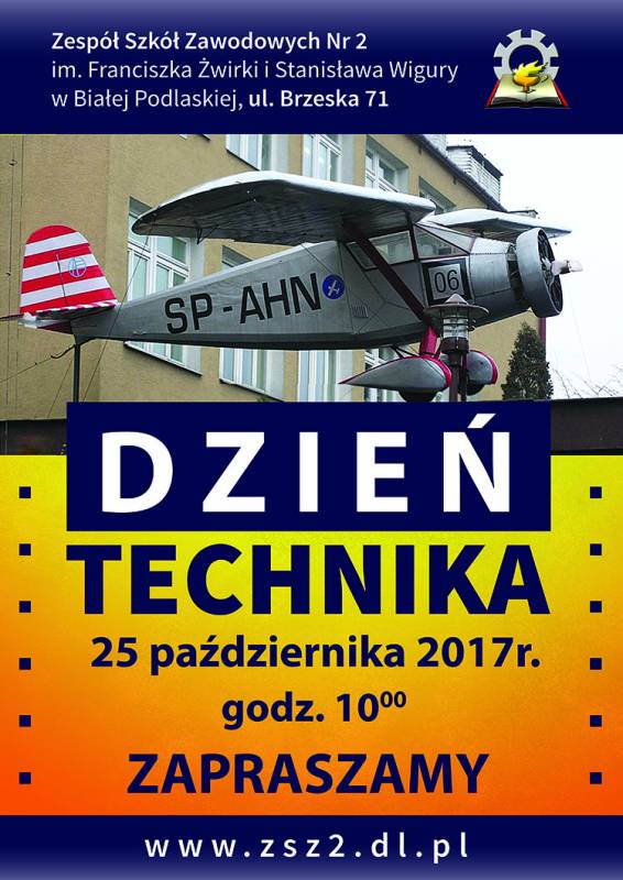 Zespół Szkół Zawodowych nr 2 zaprasza uczniów klas III gimnazjum do wzięcia udziału w Dniu Technika. Celem przedsięwzięcia jest przede wszystkim rozwój zainteresowań technicznych u młodzieży, propagowanie kształcenia technicznego oraz wskazanie atrakcyjności zawodów technicznych.