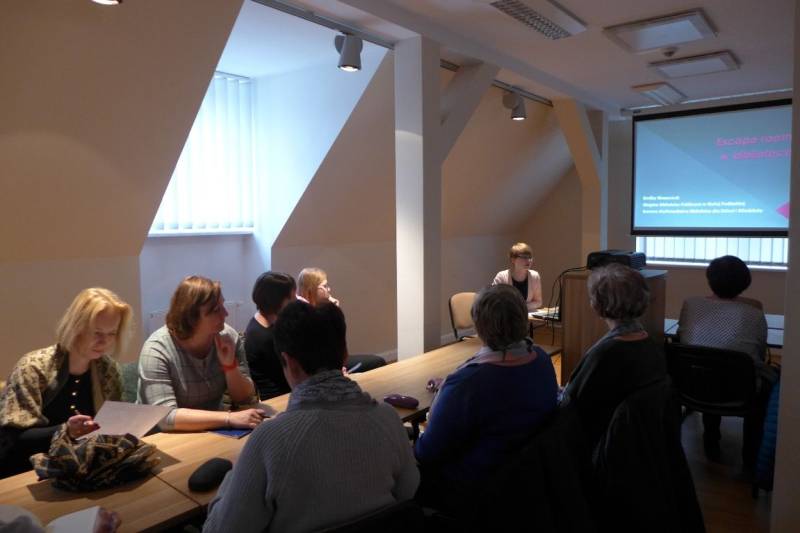 Bibliotekarze poznali możliwości bialskich bibliotek, które w Polsce stawiane są jako wzór. W ramach warsztatu „Escape room w bibliotece”, prowadzonych przez Emilię Waszczuk, bibliotekarze dowiedzieli się na czym polega ta emocjonująca gra logiczna, jak ją stworzyć i zorganizować w przestrzeni bibliotecznej oraz wzięli udział w grze-ucieczce „Escape room z Harrym Potterem”.