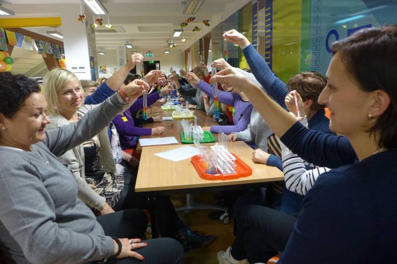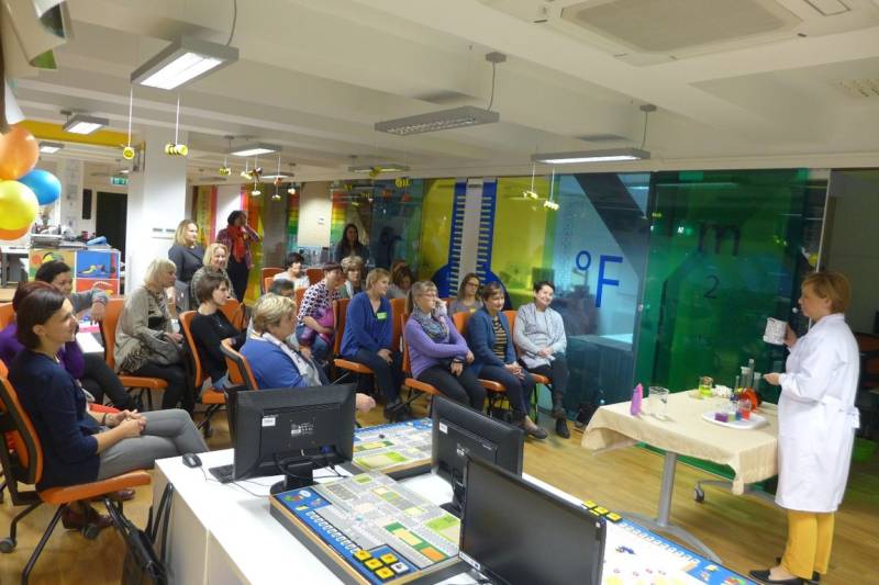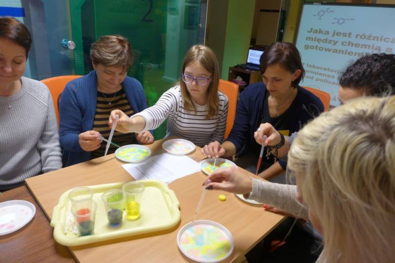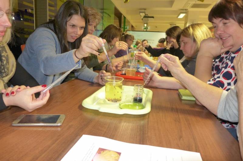 Podczas warsztatu „Do odważnych świat należy - doświadczenia i eksperymenty w bibliotece” prowadząca, Agnieszka Wdowczyk, zaprezentowała kilka ciekawych i niezwykłych eksperymentów z wykorzystaniem podstawowych składników dostępnych w każdym gospodarstwie domowym. Uczestnicy warsztatu mieli okazję samodzielnie wykonać kilka doświadczeń.
