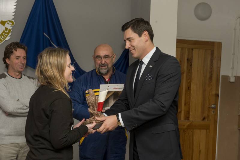 Statuetka orła powędrowała do Bożeny Anchim z Terespola, która w zeszłym roku ukończyła w Białej Podlaskiej szkolenie podstawowe a w tym roku uzyskała licencję pilota szybowcowego.