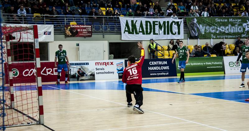 Zarówno początek spotkania, jak i cała pierwsza połowa to wyraźna przewaga bialskich szczypiornistów, którzy do szatni schodzili z wynikiem 17:15. Dobra gra przeniosła się również na drugą połowę, a widoczna przewaga utrzymała się do 50. minuty, kiedy na tablicy pojawił się wynik 31:25. Od tego momentu w grę akademików wkradło się nieco dekoncentracji, która doprowadziła do wyniku 36:34 w 59. minucie i tym samym do nieco nerwowej końcówki.