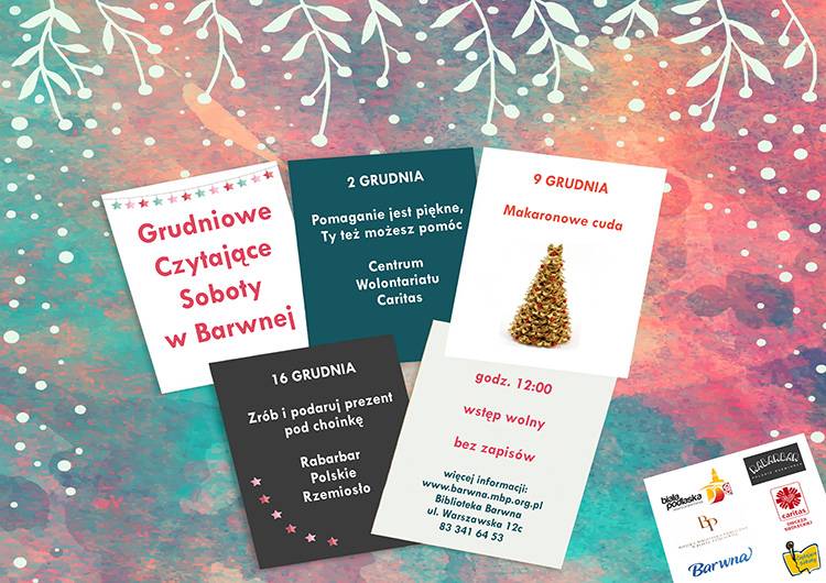 W grudniu Miejska Biblioteka Publiczna zaprasza wszystkich mieszkańców miasta na rodzinne „Czytające Soboty”. Spotkania odbywać się będą w każdą sobotę o godzinie 12.00 w Bibliotece Barwnej przy ulicy Warszawskiej 12c. Wstęp wolny. Wszelkie informacje pod numerem telefonu 83 341 64 53.