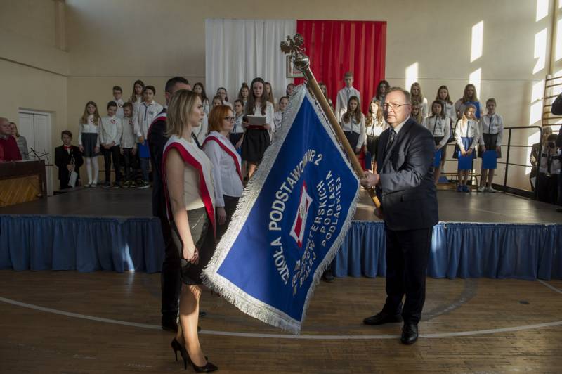 Szkoła Podstawowa nr 2 w Białej Podlaskiej ma nowy sztandar. Inicjatywę powstania nowej chorągwi podjęła i sfinansowała rada rodziców. Na uroczystości prezentacji i poświęcenia nie zabrakło absolwenta szkoły prezydenta Dariusza Stefaniuka oraz przedstawicieli weteranów lotnictwa.