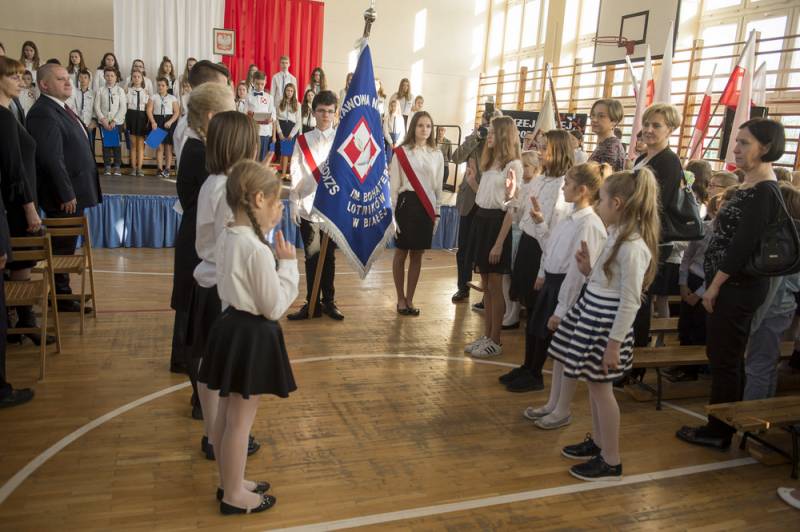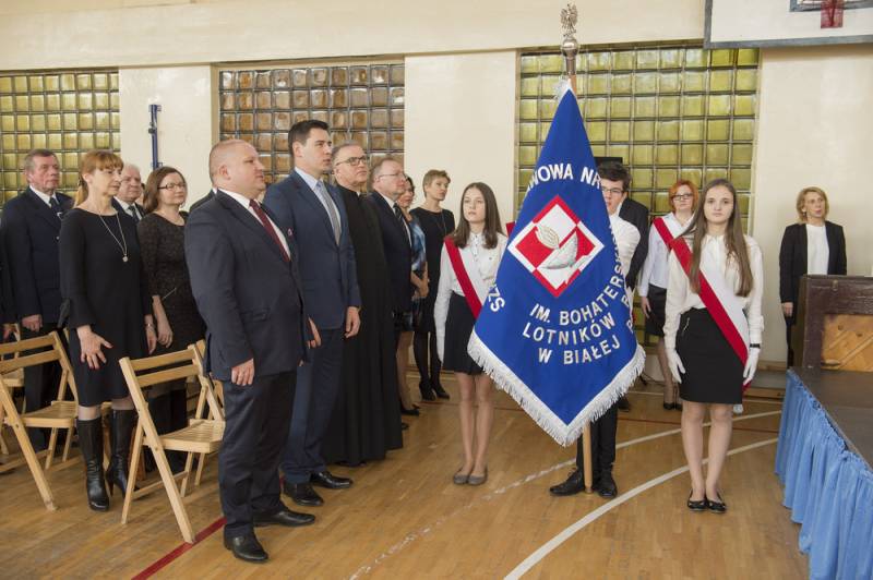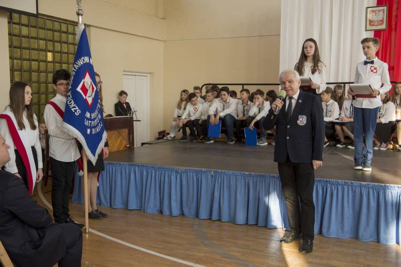 - Pamiętam jeszcze czasy, gdy przed budynkiem szkoły stał wielki samolot, którego obecnie już nie ma. Cieszę się jednak, że pielęgnujecie lotnicze tradycje, czego dowodem dzisiejsza obecność weteranów lotnictwa. Niech nowy sztandar przypomina wam zawsze o ważnych wartościach i ideałach przyświecających tej szkole – mówił podczas uroczystości prezydent Dariusz Stefaniuk.