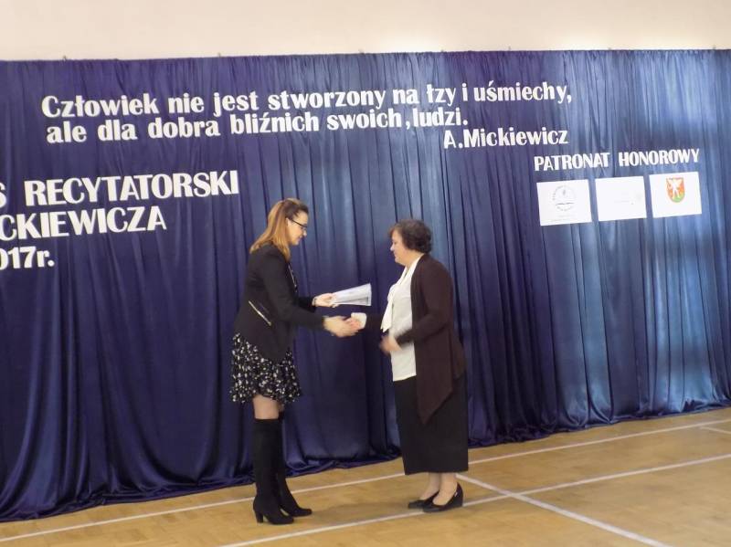 Wszyscy recytatorzy otrzymali dyplomy udziału w konkursie. Wicedyrerektor Marzena Paszkowska podziękowała za pracę komisji konkursowej i nauczycielom za trud przygotowania uczniów do konkursu. Najlepszym dyplomy i atrakcyjne nagrody książkowe wręczyła pani Małgorzata Kiec – Dyrektor Delegatury w Białej Podlaskiej Kuratorium Oświaty w Lublinie.