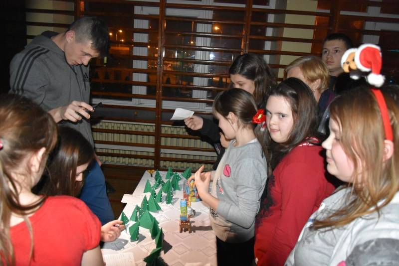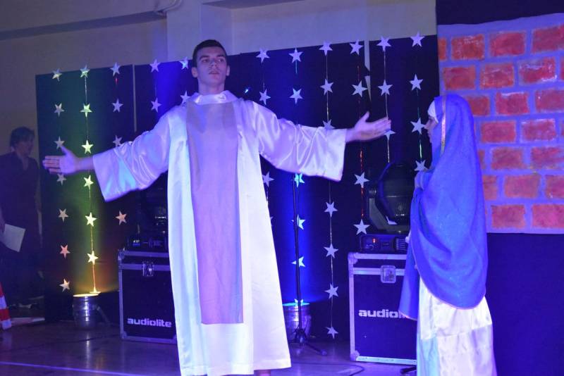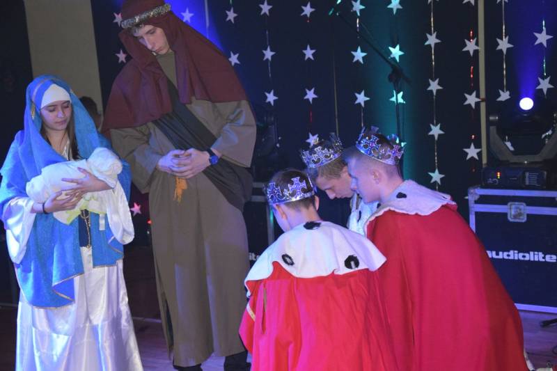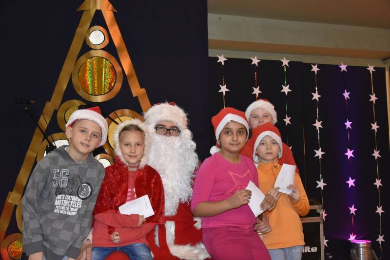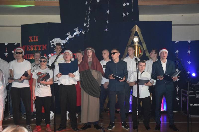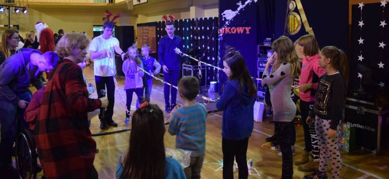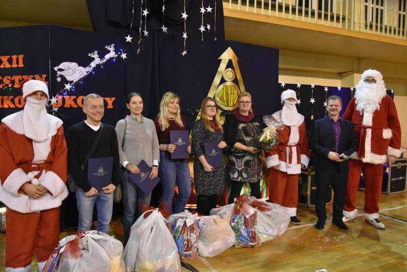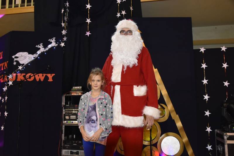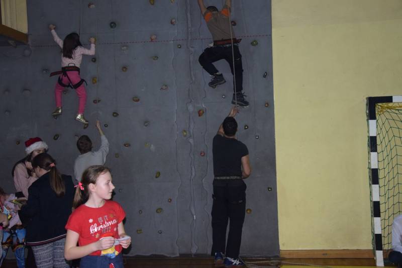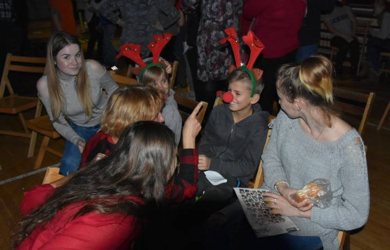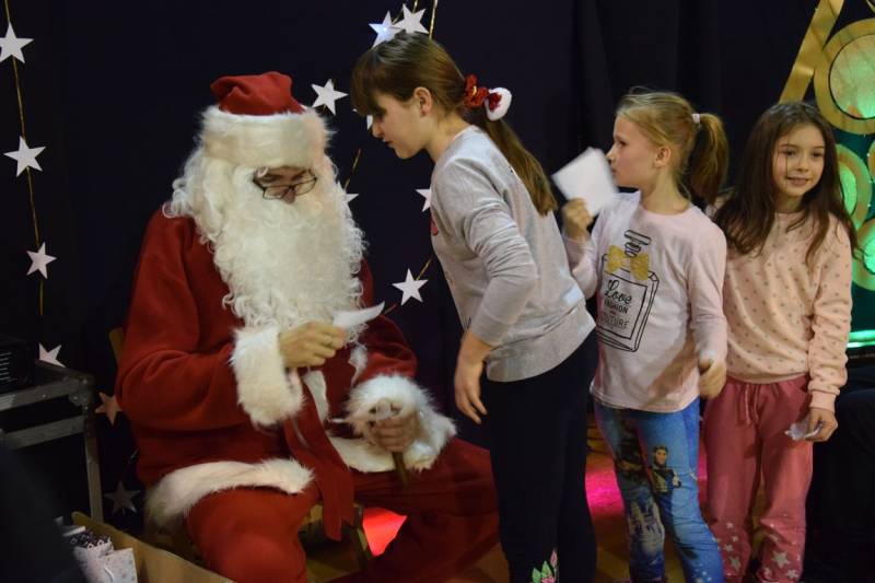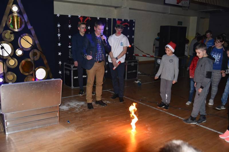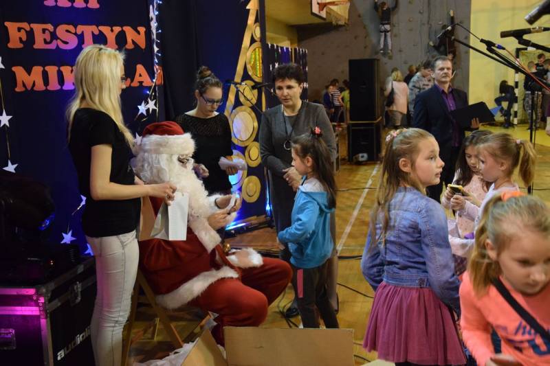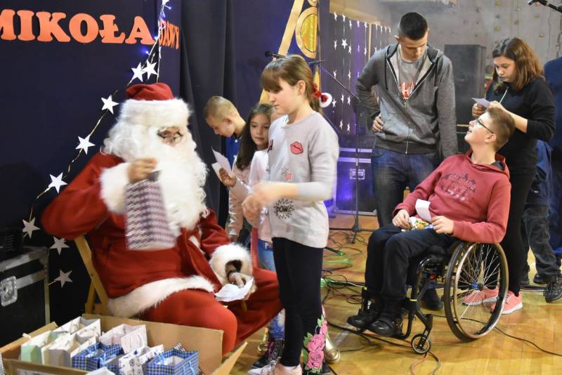 Główną atrakcja wieczoru oczywiście była wizyta św Mikołaja, a nawet kilku Mikołajów, bez których festyn nie mógłby się odbyć. W tę rolę wcielili się uczniowie klasy trzeciej technikum oraz Jakub Mikitiuk - absolwent szkoły, od kilku lat współpracujący przy organizacji Festynu Mikołajkowego