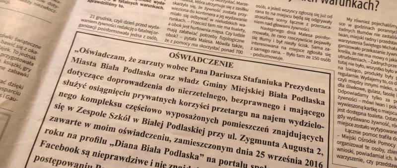 - Jestem zadowolony z takiego zakończenia sprawy, a zarazem mam pewność, że podobnych sytuacji można uniknąć. Chcemy w taki sposób udowodnić, że przestrzeń publiczna, do której zaliczamy dzisiaj również internet, nie może być miejscem rozpowszechniania fałszywych informacji, które podważają dobrą opinię Białej Podlaskiej - komentuje ugodę prezydent Dariusz Stefaniuk.