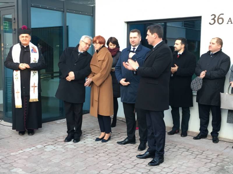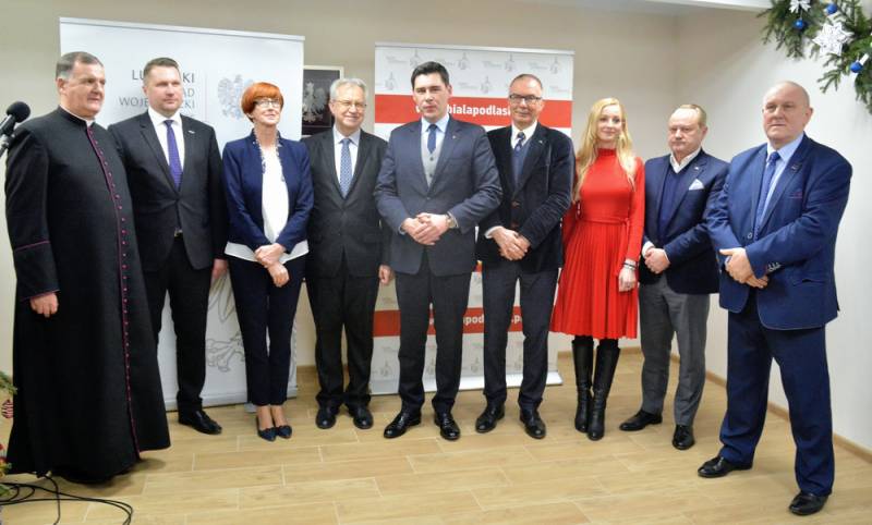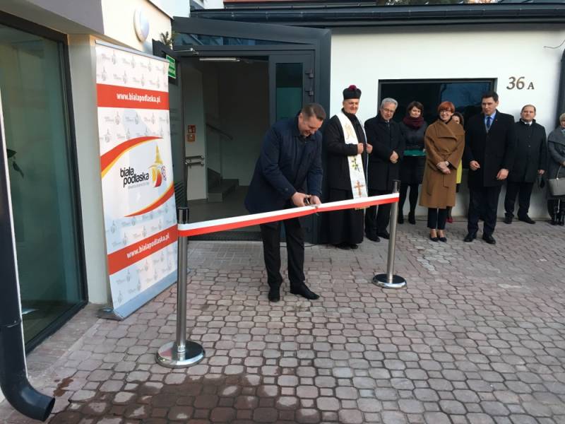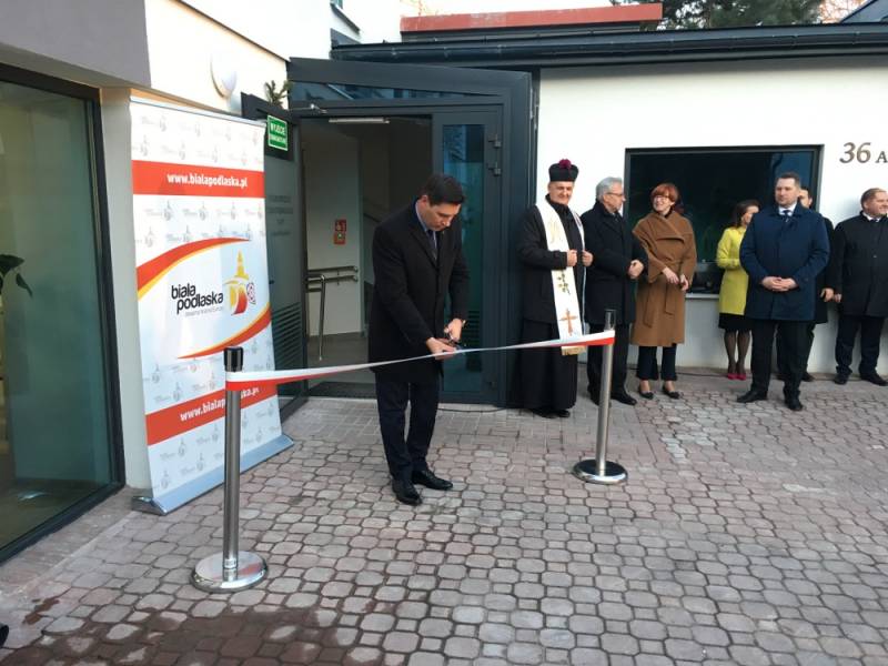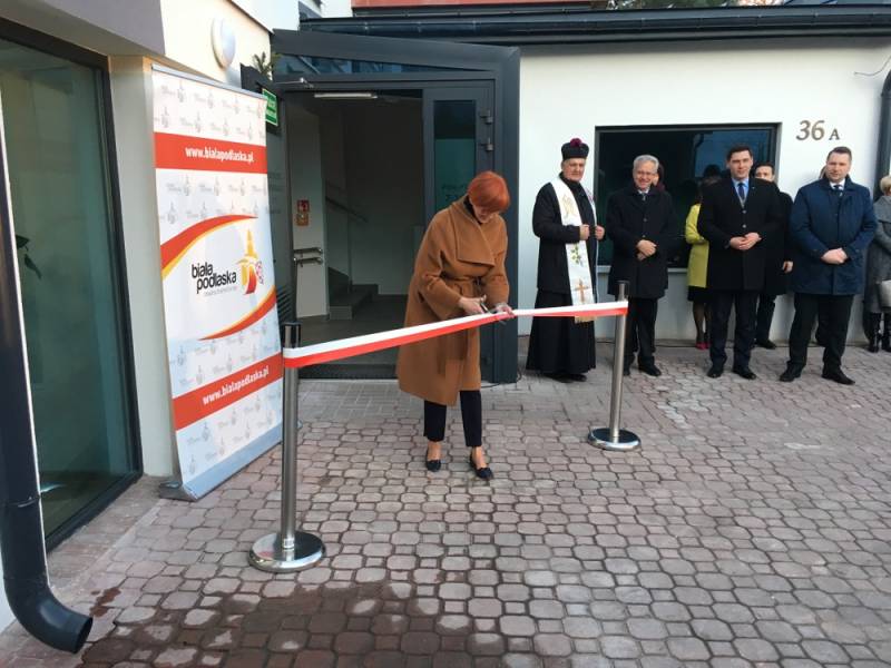 Oprócz minister Elżbiety Rafalskiej na uroczystości pojawił się także wiceminister Krzysztof Michałkiewicz i wojewoda lubelski Przemysław Czarnek. Uroczystego poświęcenia placówki dokonał ks. dziekan Marian Daniluk z parafii Narodzenia NMP w Białej Podlaskiej.W wydarzeniu uczestniczyli także przedstawiciele władz miasta i rady miejskiej, parlamentarzyści oraz personel placówki a także rodziny podopiecznych.