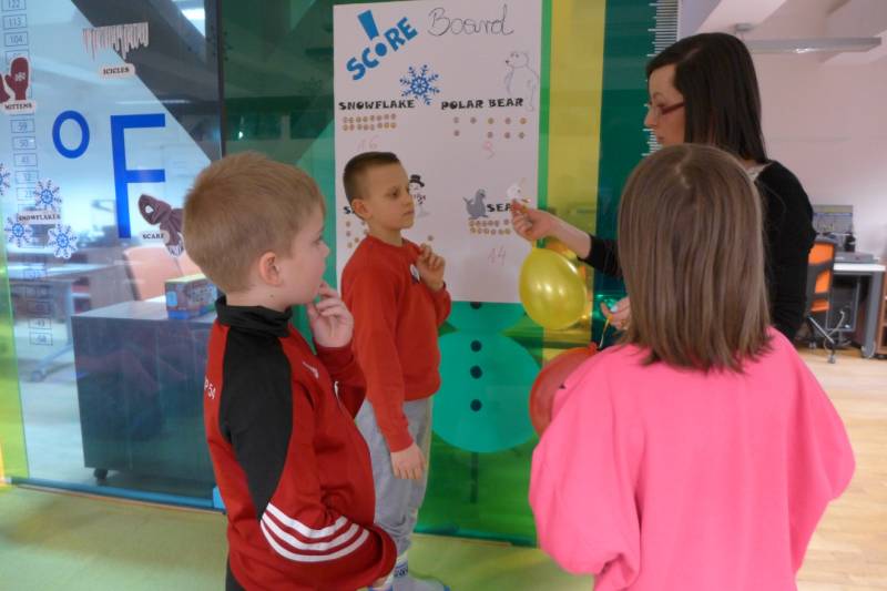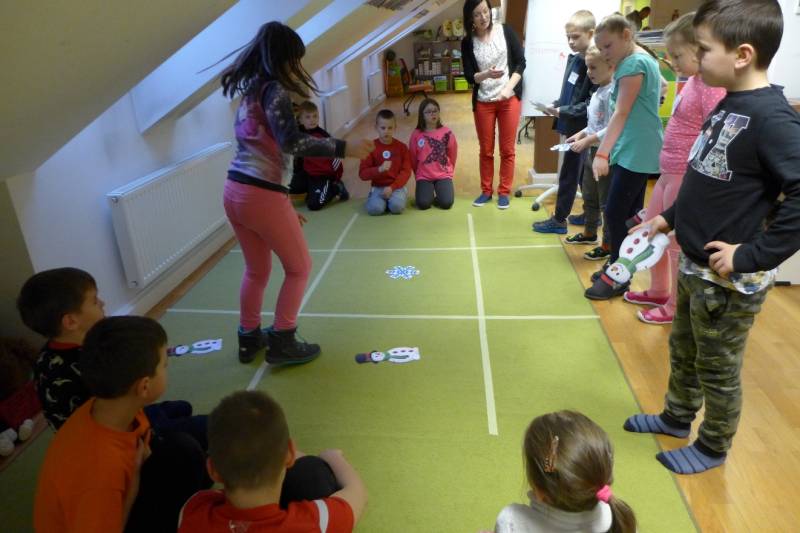 Postanowiliśmy przenieść się w iście zimowe klimaty, dlatego też tematyka zajęć była ściśle powiązana z obecną porą roku. Walcząc w drużynach, dzieci wykonywały różne zadania w języku angielskim, tym samym zdobywały punkty. Nie każda konkurencja była prosta jak chociażby gra Tic Tac Toe, niektóre konkurencje wymagały wiele wysiłku i znajomości języka tak jak Play with a parrot czy rysowanie na podstawie instrukcji w języku angielskim.