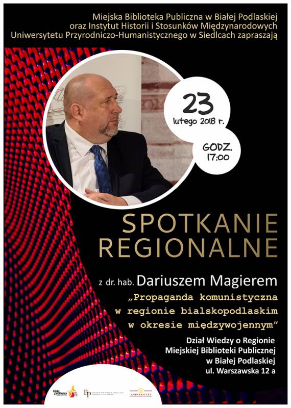 Miejska Biblioteka Publiczna w Białej Podlaskiej oraz Instytut Historii i Stosunków Międzynarodowych Uniwersytetu Przyrodniczo-Humanistycznego w Siedlcach zapraszają wszystkich miłośników regionu na spotkanie z historykiem i archiwistą dr. hab. Dariuszem Magierem, które odbędzie się 23 lutego o godzinie 17.00 w Dziale Wiedzy o Regionie.
