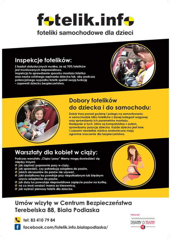 Nawiązaliśmy współpracę z fotelik.info. Wkrótce podczas miejskich wydarzeń pojawi się ekipa, która będzie kontrolować te newralgiczne elementy wyposażenia auta. Bezpieczeństwo naszych dzieci jest najważniejsza.