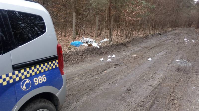 Dyżurny Straży Miejskiej otrzymał telefon, od mieszkańca, który poinformował, że na ul. Olszowej, przy drodze w lesie leżą porzucone śmieci. Patrol odnalazł wskazane miejsce i przystąpił do poszukiwania sprawcy. Wśród śmieci odnalazła się korespondencja ujawniająca dane i adres zaśmiecającego.
