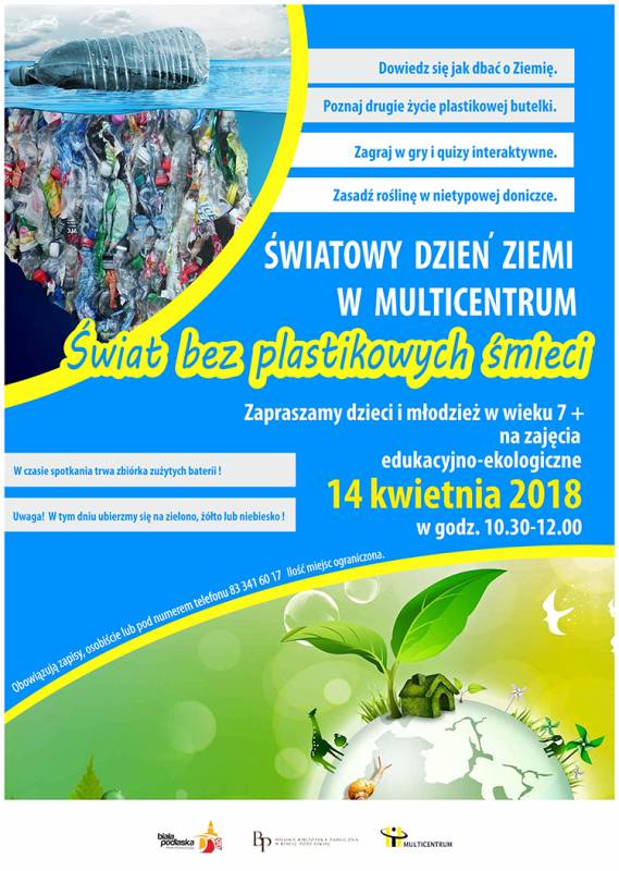 Multicentrum Miejskiej Biblioteki Publicznej zaprasza dzieci, które ukończyły 7 lat do wzięcia udziału w zajęciach edukacyjno-ekologicznych organizowanych z okazji Dnia Ziemi. Wydarzenie odbędzie się 14 kwietnia w godzinach 10.30-12.00.