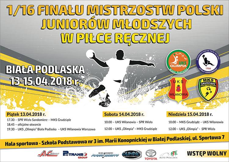 Młodzi piłkarze ręczni Olimpii Biała Podlaska walczyć będą w 1/16 finału mistrzostw Polski. Turniej zostanie rozegrany od 13 do 15 kwiernia w hali Szkoły Podstawowej nr 3. Rywalami podopiecznych Marcina Stefańca i Marka Kubiszewskiego będą drużyny: Wisły Sandomierz, MKS Grudziądz i Wilanowii Warszawa.