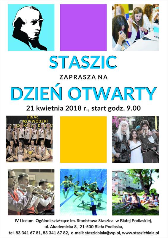 Dyrekcja, nauczyciele i uczniowie IV Liceum Ogólnokształcącego im. Stanisława Staszica w Białej Podlaskiej organizują dla wszystkich tegorocznych absolwentów gimnazjów - Dzień Otwarty, który odbędzie się 21 kwietnia od godziny 9.00 do godz. 13.00 w budynku liceum przy ul. Akademickiej 8.