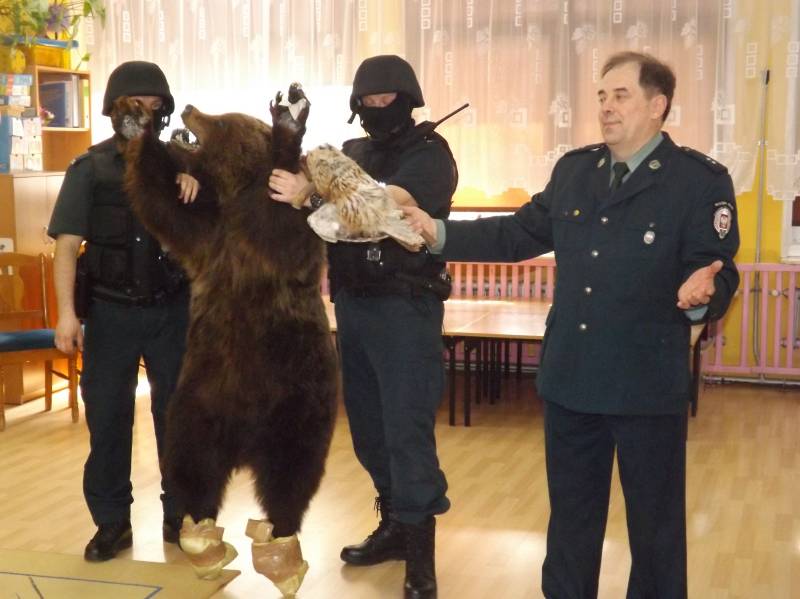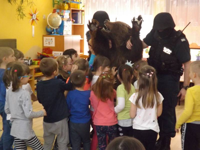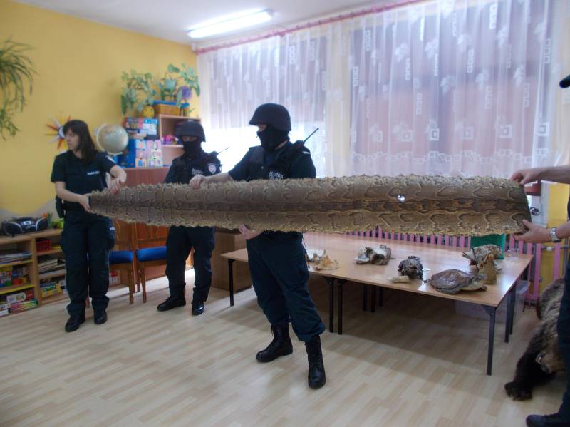 Przedszkolaki dowiedziały się, jakich towarów nie należy przywozić z zagranicznych podróży oraz dlaczego chronimy rośliny i zwierzęta. Zainteresowaniem dzieci cieszyły się prezentowane przez funkcjonariuszy, zatrzymane okazy chronionych gatunków zwierząt. Dzieci mogły przyjrzeć się z bliska i dotknąć przywiezione eksponaty – skóry węża, krokodyla, żółwia, niedźwiedzia, sowy,wydrę, fragmenty małży czy koralowca.