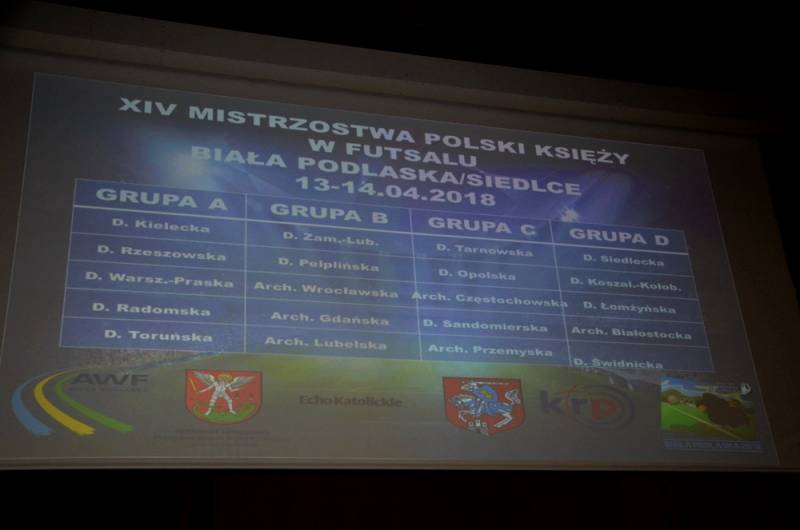 Podczas uroczystości otwarcia rozlosowano grupy, w których zagrają uczestnicy mistrzostw. Rozstawiono w nich m.in. gospodarzy – diecezję siedlecką, która w poprzednim roku otarła się o podium, zajmując czwarte miejsce. Tytułu będą bronili przedstawiciele diecezji kieleckiej.