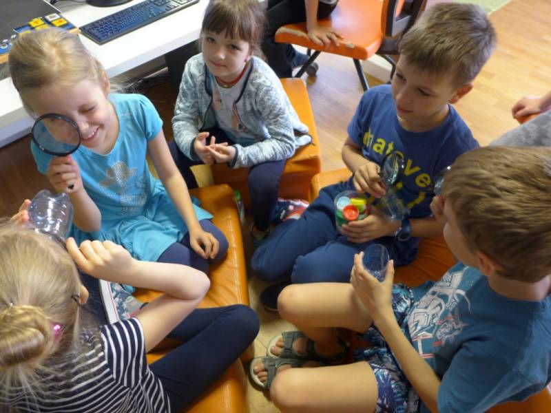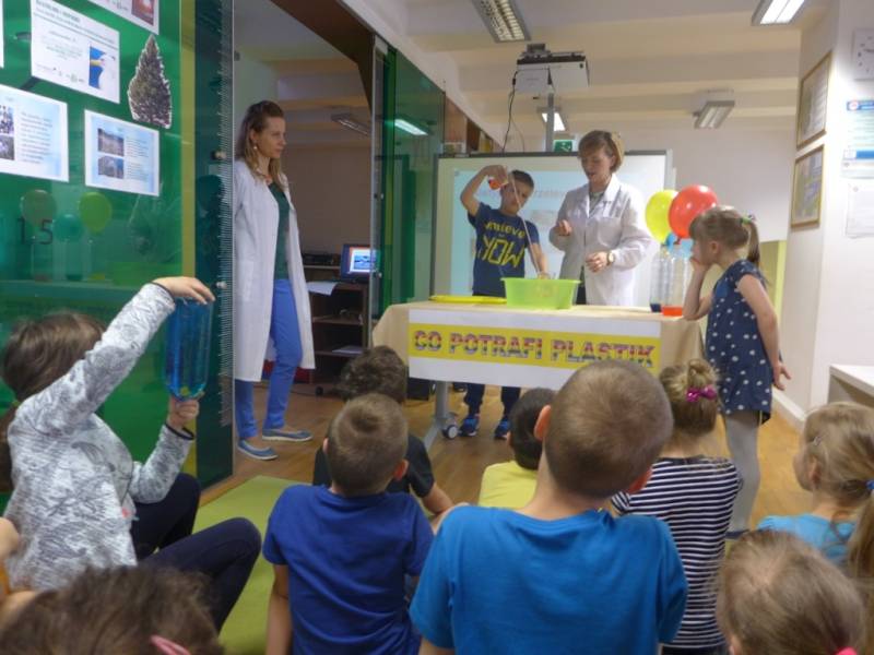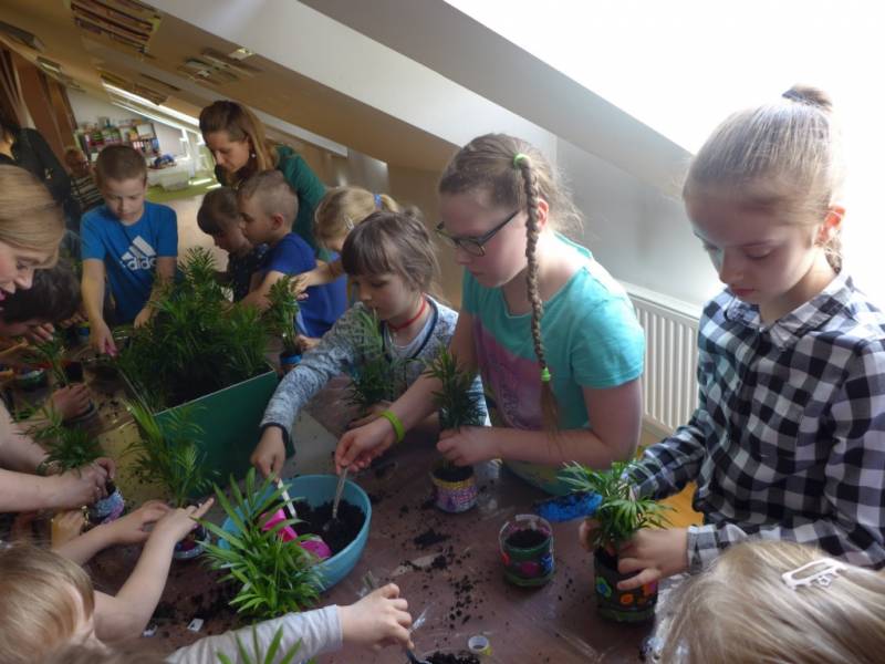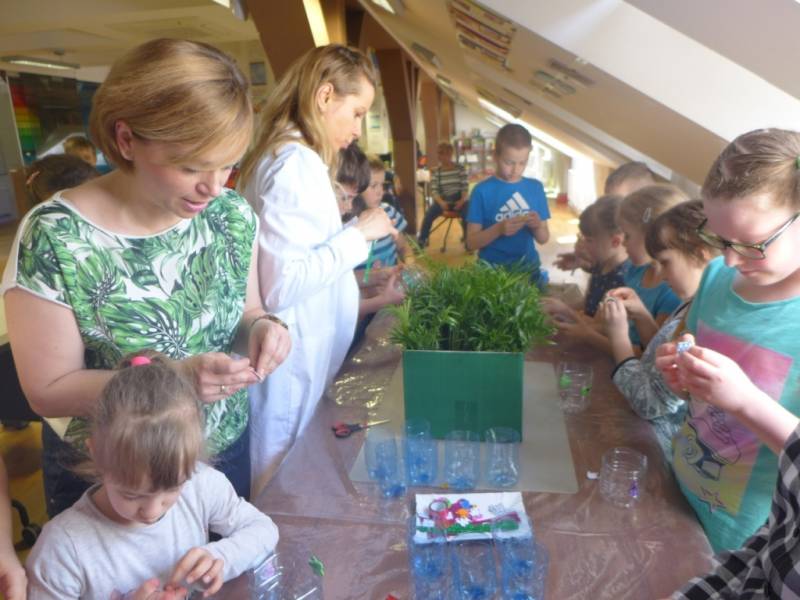 Dzięki interesującej prezentacji uczestnicy poznali skutki nieodpowiedniego korzystania z plastikowych przedmiotów. Dużo entuzjazmu wzbudził pokaz ciekawych doświadczeń, w których główną rolę odgrywały plastikowe butelki. Dzieci samodzielnie wykonały przepiękne, nietypowe doniczki, w których zasadziły rośliny. Były bardzo szczęśliwe, że mogą zabrać je do domu i uczynić drobny gest, aby zadbać o naszą planetę.