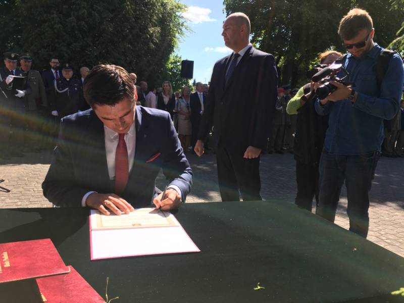 Wiceminister zarówno w centrum miasta, jak i wcześniej - pod pomnikiem poświęconym żołnierzom 34. pułku piechoty, odczytał list Mariusza Błaszczaka, ministra obrony narodowej, w którym dziękował za pielęgnowanie tradycji wojskowych w Białej Podlaskiej.