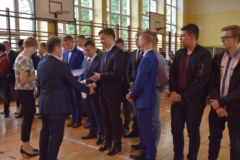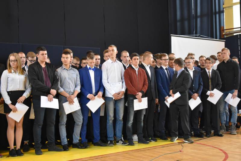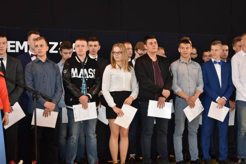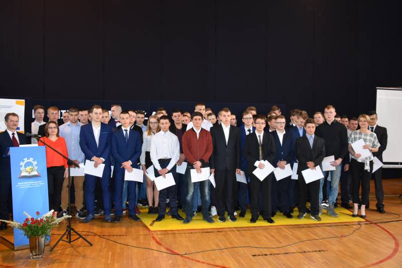 Podczas akademii 60 uczniom, w tym 54 uczniom klas czwartych technikum i 6 uczniom trzeciej klasy szkoły zawodowej, dyrektor szkoły Ryszard Dołęga i asystent w projekcie Małgorzata Twarowska-Przygoda wręczyli zaświadczenia udziału w projekcie „Fachowcy z Brzeskiej!”. Ponadto 11 uczniom zostały wręczone książeczki spawacza metodą MAG.