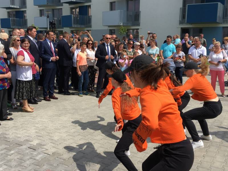 Dariusz Stefaniuk osobiście przekazał klucze do nowych mieszkań dwóm rodzinom. Szczęśliwcom gratulował szef polskiego rządu, który następnie miał okazję obejrzeć wnętrza przygotowane w ramach rządowego programu.