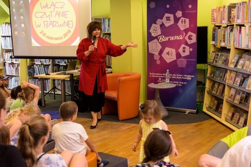Znana aktorka teatralna i telewizyjna, wspaniała lektorka audiobooków dla dzieci, jak również ambasadorka kampanii „Cała Polska czyta dzieciom” - Edyta Jungowska odwiedziła Barwną Multimedialną Bibliotekę dla Dzieci i Młodzieży.