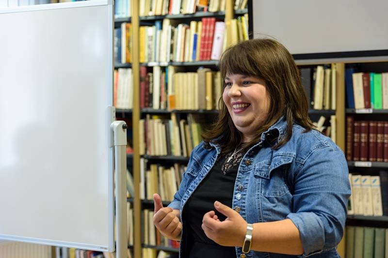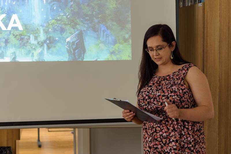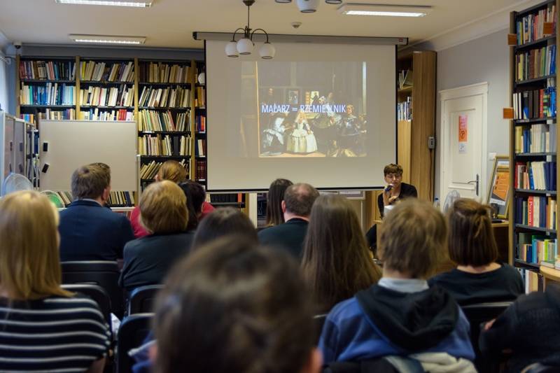 Anna Salwin drugim wykładem porwała nas w świat sztuki. W przepiękny sposób przedstawiła portretowanie kobiet, głównie, w malarstwie i grach wideo, zwracając przy tym uwagę na traktowanie często ciała kobiecego, jako chwytu marketingowego i epatowanie w tym celu niepotrzebną nagością. Na prośbę zgromadzonych Salwin omówiła swoje prace zaprezentowane na wystawie mieszczącej się w holu MBP. Poznaliśmy techniki tworzenia prac oraz interesujące i czasami zabawne okoliczności i ich powstawania.
