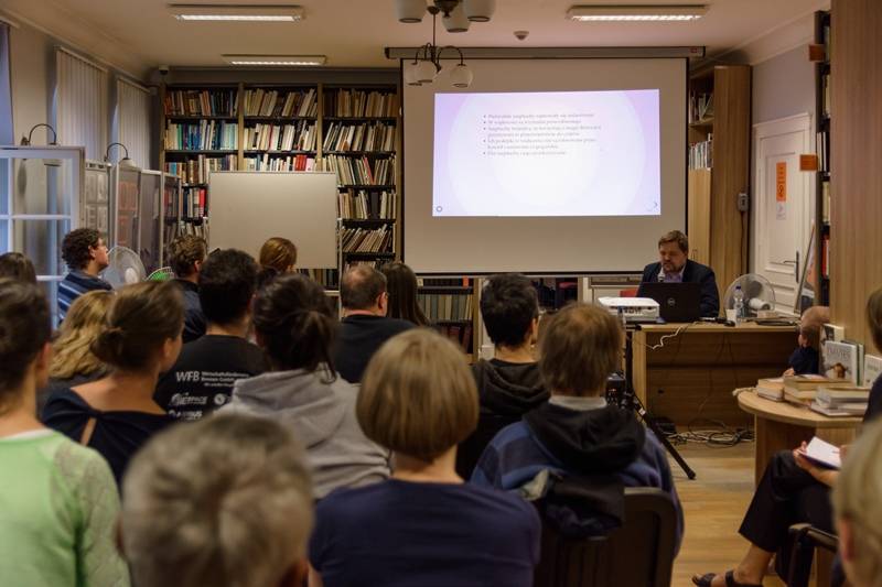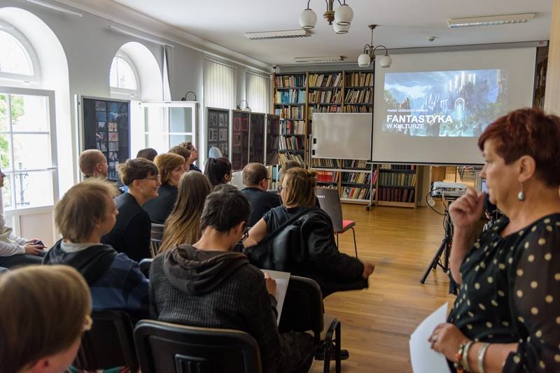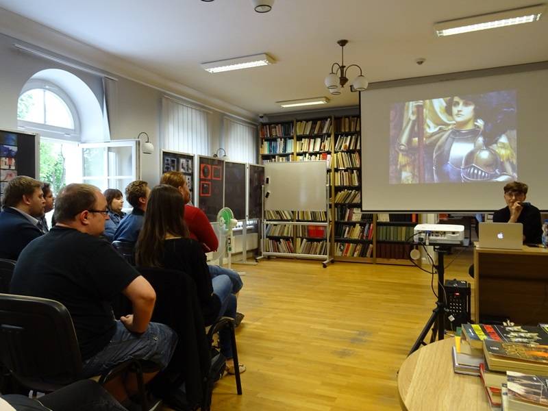 Przygotował on bardzo interesującego wykład „Fantastyka w kulturze”, w którym autor przedstawił ujęcie historyczne motywów fantastycznych pojawiających się w literaturze i sztuce. Dużo dowiedzieliśmy się o filmach z elementami fantastyki, poznaliśmy tajemnicę popularności tego nurtu w różnych dziedzinach literatury i sztuki.