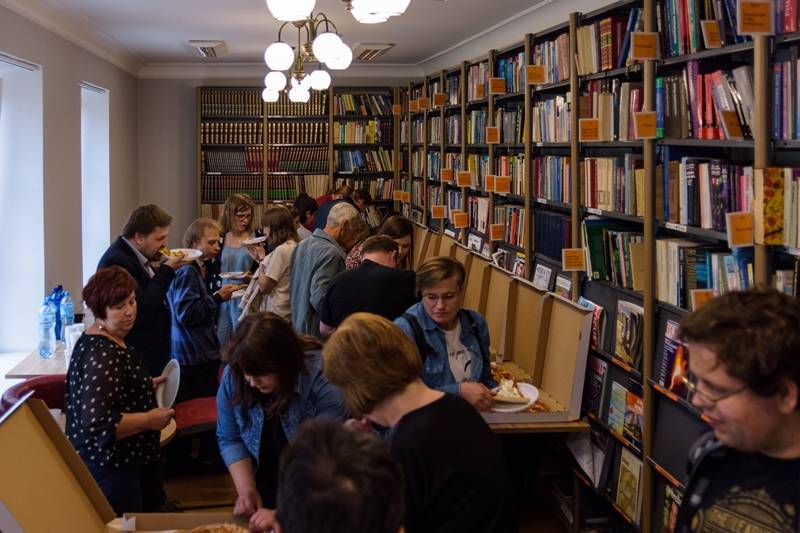 Wakacje to przede wszystkim zabawa, odpoczynek, integracja z przyjaciółmi. Miejska Biblioteka zapewniła pilnym słuchaczom wykładów wesołą zabawę w kalambury, która polegała na „wyrysowaniu” wylosowanych haseł z zakresu fantastyki, na specjalnie do tego celu zakupionej tablicy. Dodatkowym, wakacyjnym akcentem dla wytrwałych odbiorców wieczornej imprezy, była aromatyczna pizza, zaserwowana w ramach poczęstunku.