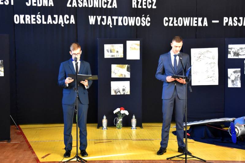 Postaci patronów Zespołu Szkół Zawodowych nr 2 - Franciszka Żwirko i Stanisława Wigury, pilota i konstruktora, najsłynniejszych „polskich skrzydeł”, przybliżyli wszystkim zebranym uczniowie szkoły w części artystycznej przygotowanej pod kierunkiem Katarzyny Wojewody, Izabeli Włodarskiej i Piotra Skwierczyńskiego.