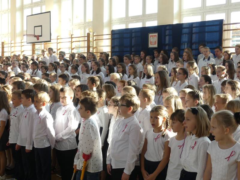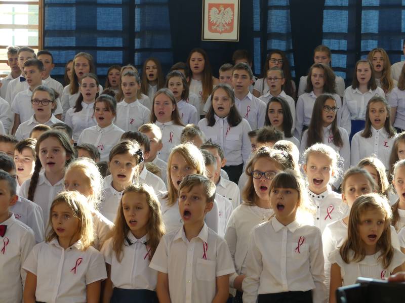 Uczniowie zaprezentowali wysoki poziom artystyczny. Śpiew tak dużej liczby uczniów pokazał siłę szkolnej społeczności, a wśród zebranych gości wzruszenie i dumę. Była to wspaniała lekcja patriotyzmu. Doświadczenie, które każdy z uczestników zapamięta do końca życia. Obecna na sali komisja konkursowa zarejestrowała występ bialskich uczniów. Niecierpliwie czekamy na wyniki rywalizacji 300 szkół z całego kraju