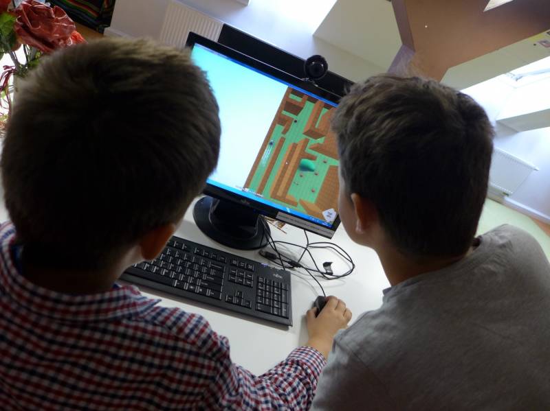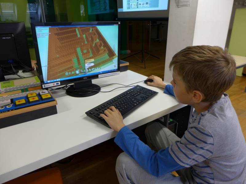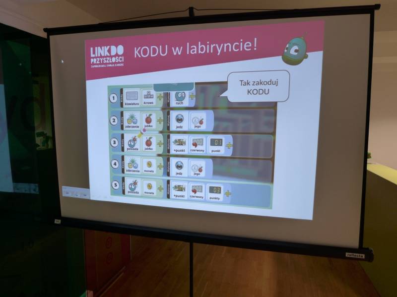 Pierwsze zajęcia związane były z aplikacją Kodu Game Lab, pozwalającą na tworzenie efektownych gier 3D przy jednoczesnej nauce programowania. Dzieci biorące udział w zajęciach poznały możliwości programu oraz stworzyły grę polegającą na przejściu przez labirynt i zebraniu wymaganej liczby przedmiotów tak, aby zdobyć wystarczającą ilość punktów pozwalającą na ukończenie gry.
