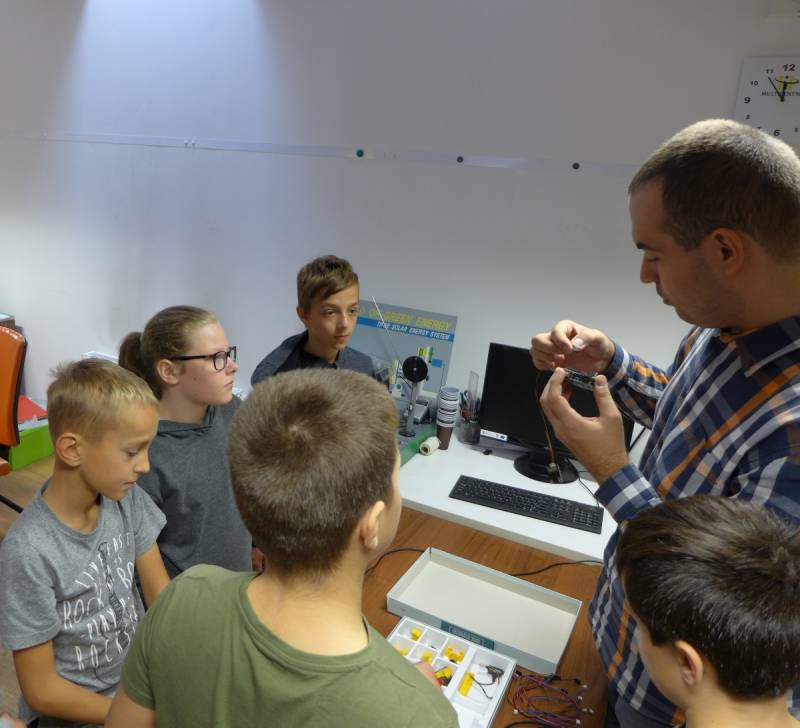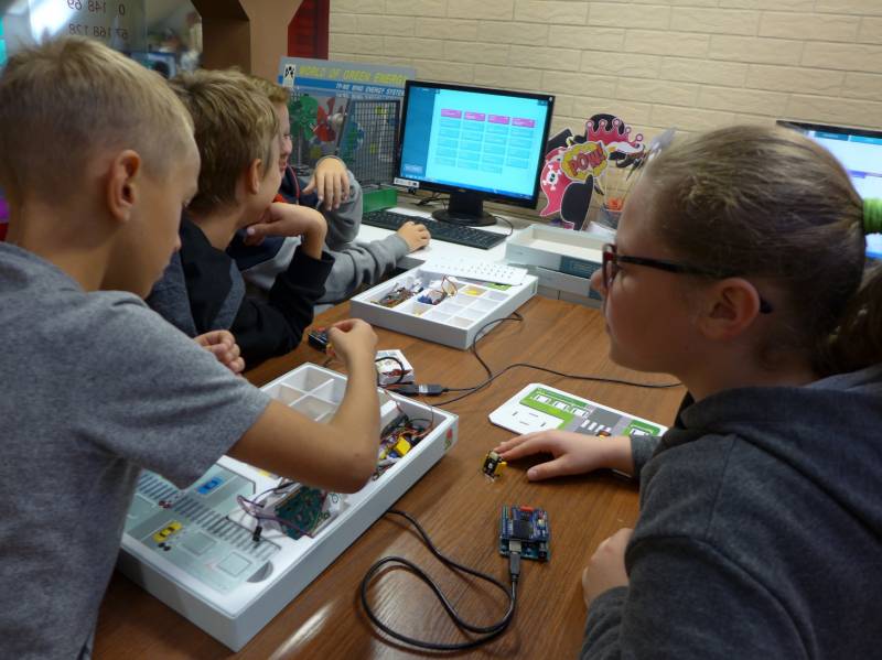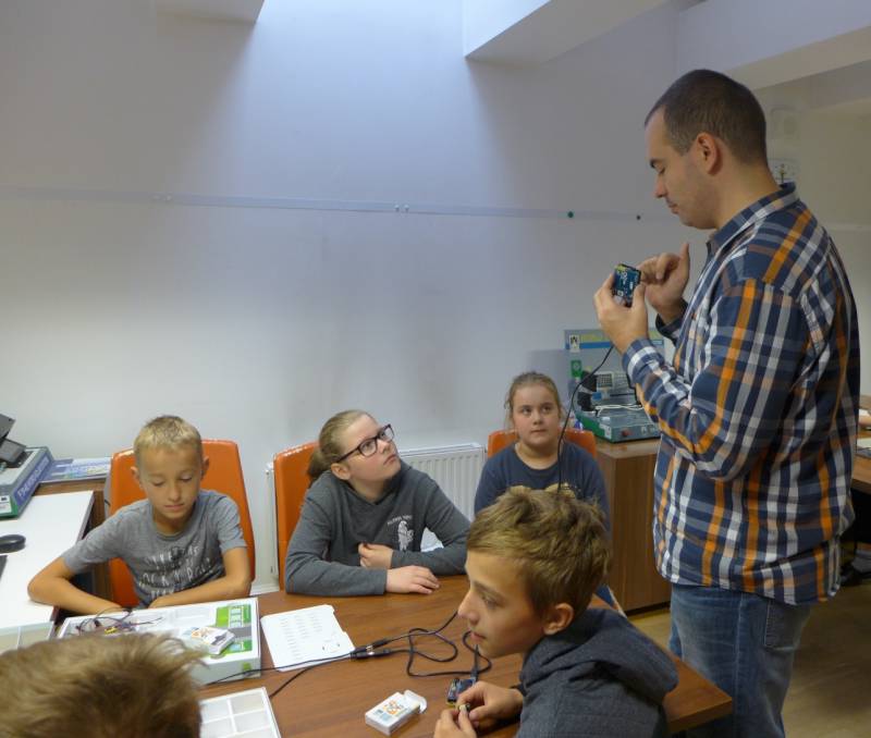 Drugie warsztaty, przygotowane z myślą o nieco starszych uczestnikach, pozwoliły im poznać nie tylko podstawy programowania, ale również elektroniki. Młodzież poznała między innymi takie elementy jak diody LED oraz różnego rodzaju czujniki, a następnie po właściwym podłączeniu do płytki Arduino odpowiednio programowała ich sposób działania.