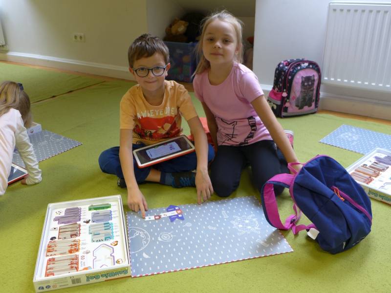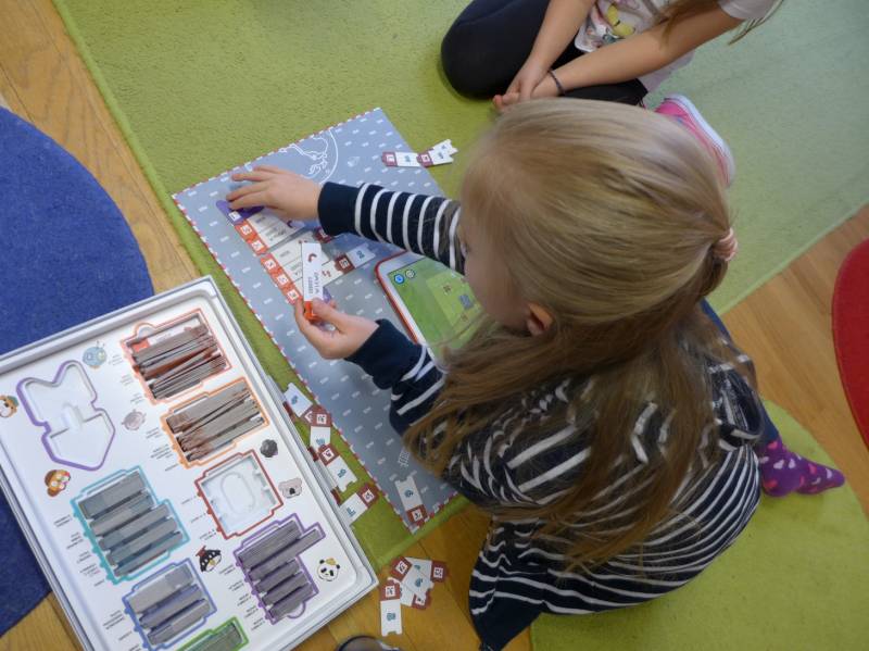 Trzecie warsztaty adresowane były do najmłodszych uczestników i wykorzystana została na nich gra edukacyjna do nauki programowania Scottie Go! Uczestnicy z kartonowych klocków układali programy, następnie skanowali je z pomocą tabletu tak, aby bohater w aplikacji wykonywał odpowiednie ruchy i działania.