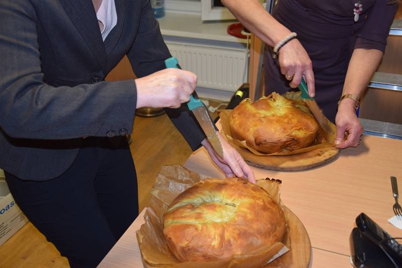 Niespodzianką dla wszystkich przybyłych był smakowity poczęstunek - tatarski pieróg, który przygotowały gospodynie ze Studzianki.Wypiek przypomina zwiniętą skorupę ślimaka. Efekt ten uzyskuje się dzięki nałożeniu na siebie sześciu lub więcej, bardzo cienkich warstw rozwałkowanego ciasta, przekładanych mięsnym farszem i zwiniętych w rulon.