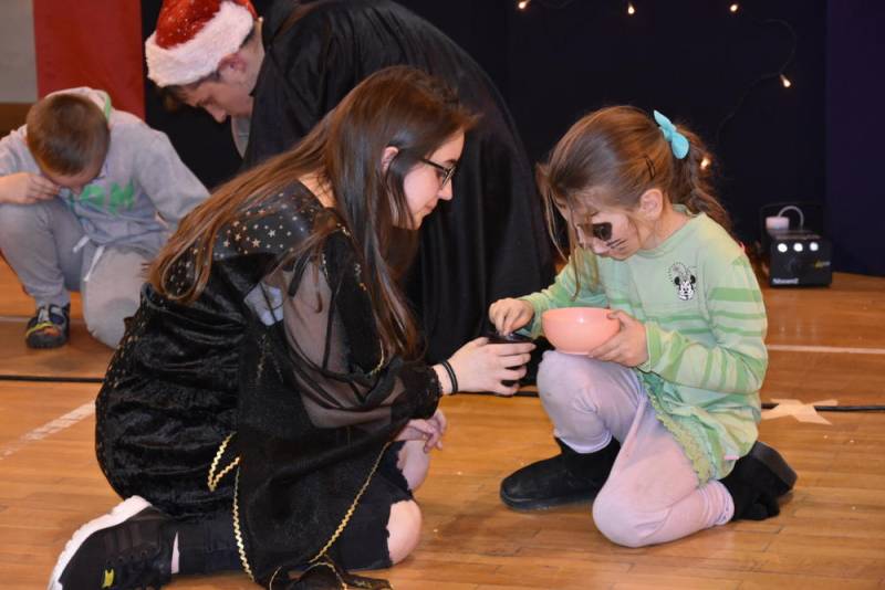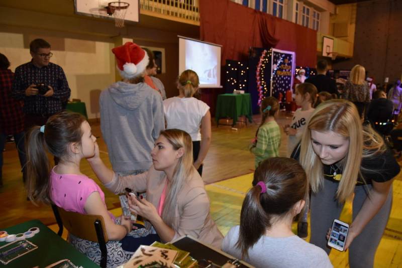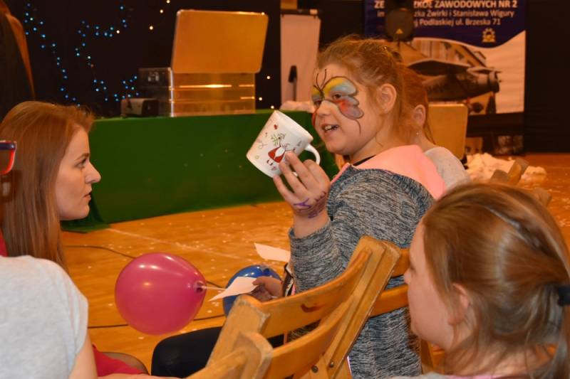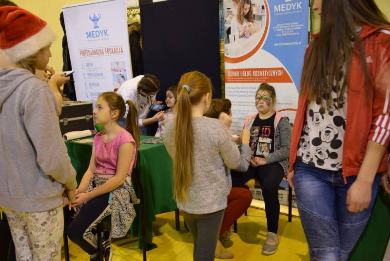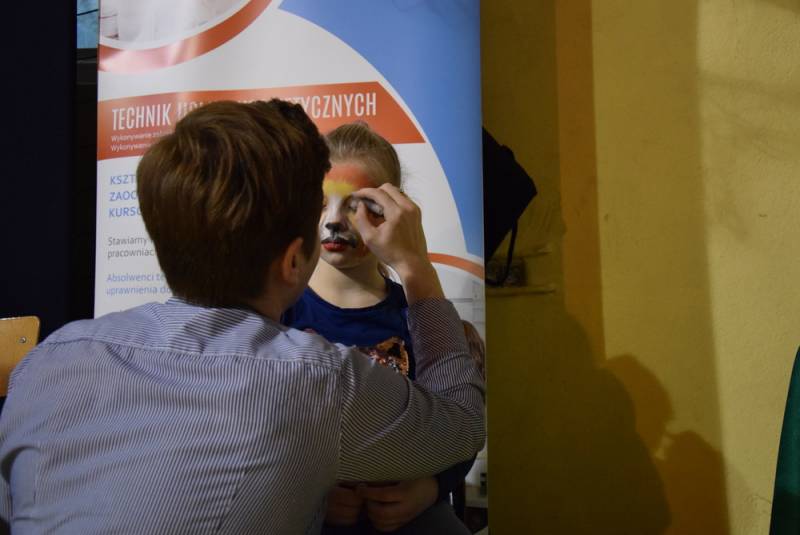 Dzięki współpracy z Medycznym Studium Zawodowym z Białej Podlaskiej wszystkie chętne dzieci miały wykonany niekonwencjonalny „bajkowy” makijaż. Z kolei na korytarzu przed salą gimnastyczną na przybyłych czekał smaczny poczęstunek przygotowany przez uczniów i nauczycieli.