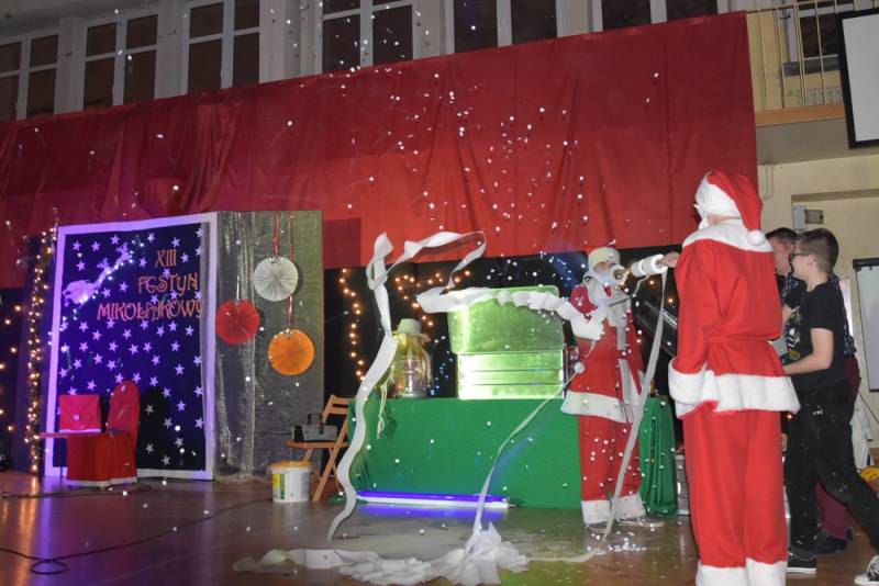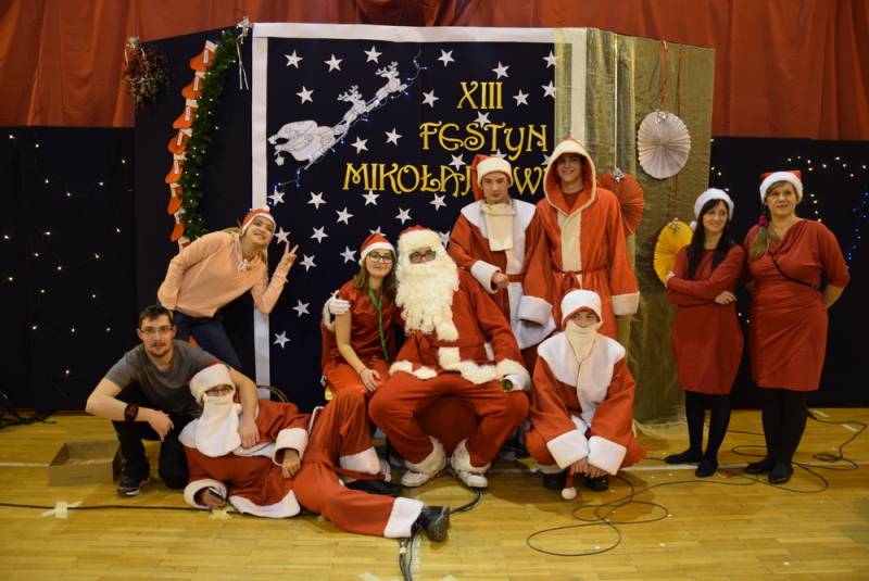 Oczywiście festyn nie mógłby odbyć się bez obecności Mikołaja (a nawet kilku Mikołajów). W tę rolę (już od kilku lat) wciela się absolwent szkoły Jakub Mikitiuk, a towarzyszą mu uczniowie klas technikum.