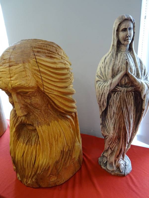 Radosław Michalczuk rzeczowo i dość wyczerpująco opowiadał o swojej pasji tworzenia, ulubionych tematach rzeźbiarskich i o narzędziach, których używa, bo tak pokaźnych rozmiarów dzieła rzeźbi… piłą spalinową. Rzeźby i płaskorzeźby tego artysty są również bliskie drewnianej formie ludowej. Wykonane z drewna drzew liściastych - lipy, dębu, jesionu - robią wrażenie zarówno wielkością, jak i dbałością o szczegóły.