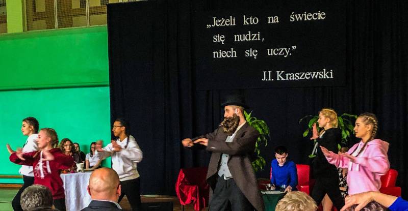 Dyrektor liceum Ireneusz Szubarczyk podkreślił, że szkolną społeczność zawsze tworzą nauczyciele, pracownicy szkoły – i oczywiście młodzież. „Jeśli kto na świecie nudzi się, niech się uczy” – te słowa patrona szkoły były myślą przewodnią tego dnia. Ale nauka nie musi oznaczać nudy i nie nudzili się zaproszeni na uroczystość goście, którym licealiści pokazali, jak dziś patrzą na postać J.I. Kraszewskiego. Nie mieli wątpliwości, że wielki umysł świetnie poradziłby sobie i odnalazł się także w nam współczesnej rzeczywistości.