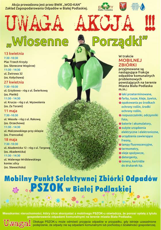 Mieszkańcy Białej Podlaskiej mogą skorzystać z mobilnych PSZOKów. Zadaniem mobilnych punktów selektywnej zbiórki odpadów komunalnych jest bezpłatne przyjmowanie odpadów komunalnych.