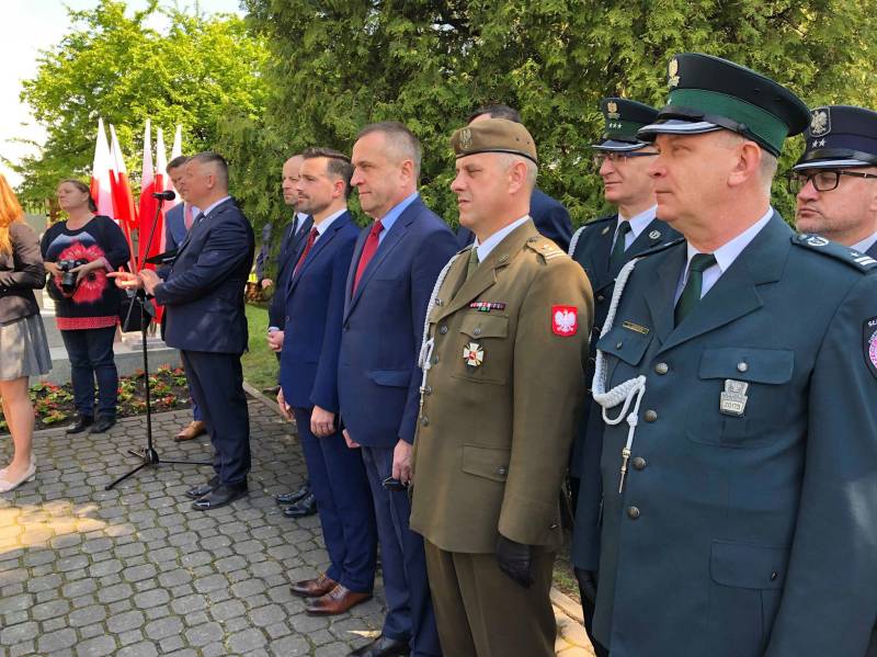 Przed rozpoczęciem oficjalnych uroczystości przy pomniku 34. Pułku Piechoty znajdującym się przy ul. Warszawskiej prezydent Michał Litwiniuk i dyrektor gabinetu prezydenta Wojciech Sosnowski złożyli w imieniu bialczan kwiaty na grobie jednego z żólnierzy na bialskim cmentarzu.