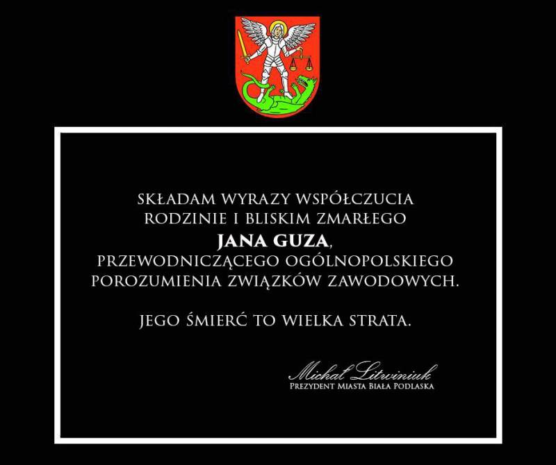 Śmierć Jana Guza napełniła smutkiem cały kraj. Jan Guz był mocno związany z Białą Podlaską - tu ukończył szkołę zawodową oraz technikum mechaniczne w ZSZ nr 2. Uroczystości pogrzebowe odbędą się 29 maja w naszym mieście.