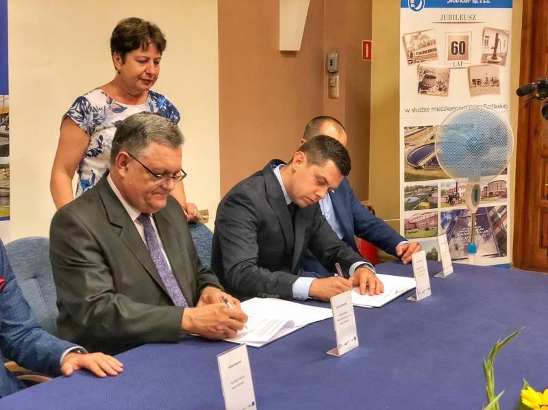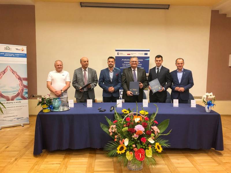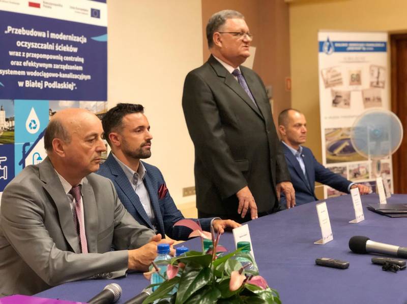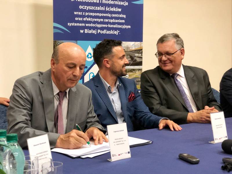 Podpisanie Kontraktu na przebudowę i modernizację gospodarki ściekowej i gospodarki osadowej na Oczyszczalni w Białej Podlaskiej w ramach projektu „Przebudowa i modernizacja Oczyszczalni ścieków wraz z przepompownią centralną oraz efektywnym zarządzaniem systemem wodociągowo-kanalizacyjnym w Białej Podlaskiej” oznacza kolejną ważną dla miasta inwestycję. W wydarzeniu wzięli udział prezydent Michał Litwiniuk, wiceprezydent Maciej Buczyński, przedstawiciele firmy Budomex Sp. z o.o. oraz spółki Bialskie Wodociągi i Kanalizacja "WOD-KAN" Sp. z o.o.