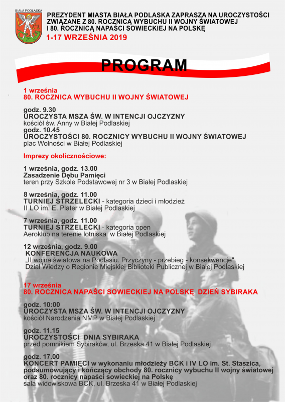 W 2019 r. czcimy 80. rocznicę wybuchu II wojny światowej i napaści sowieckiej na Polskę. Prezydent Michał Litwiniuk zaprasza na upamiętniające je uroczystości miejskie i wydarzenia.